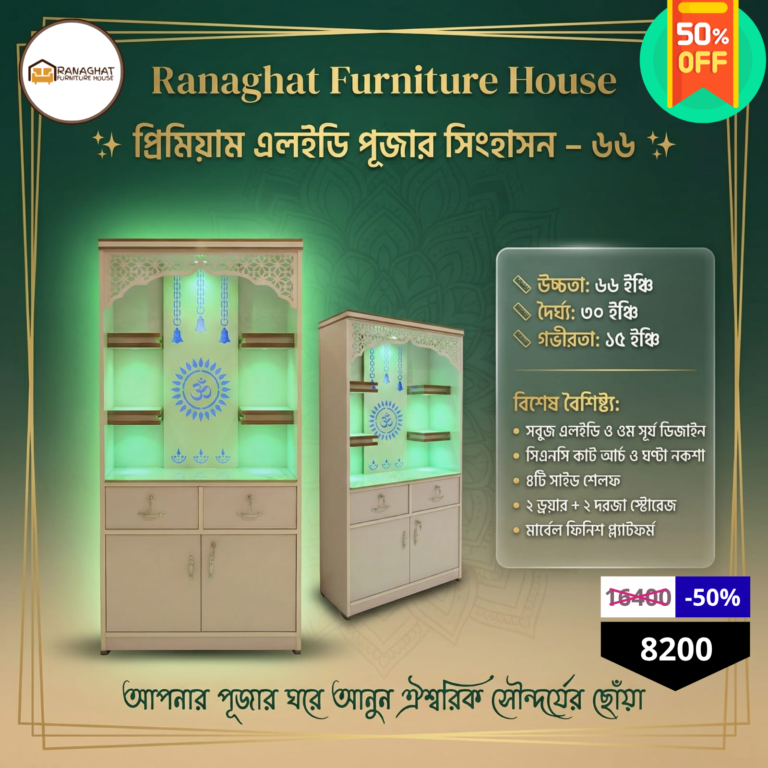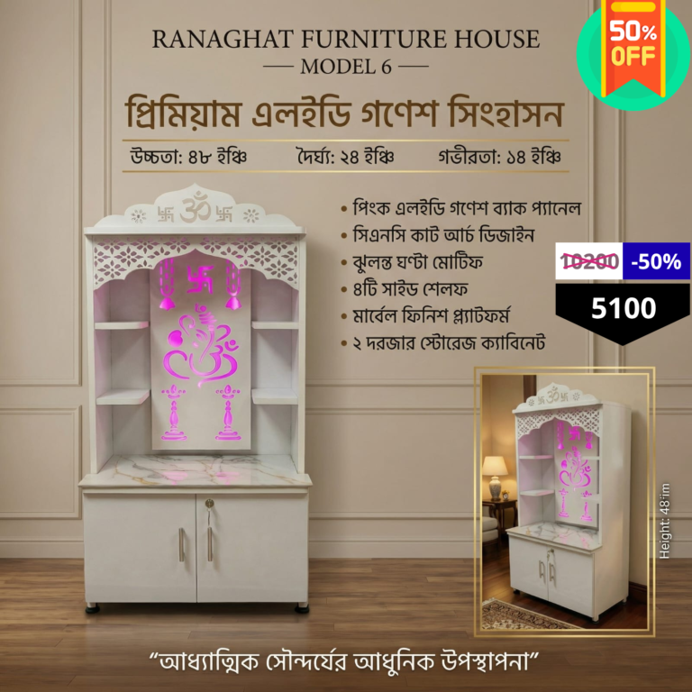 Premium Wooden Pooja Mandir with LED Ganesh Panel & Storage