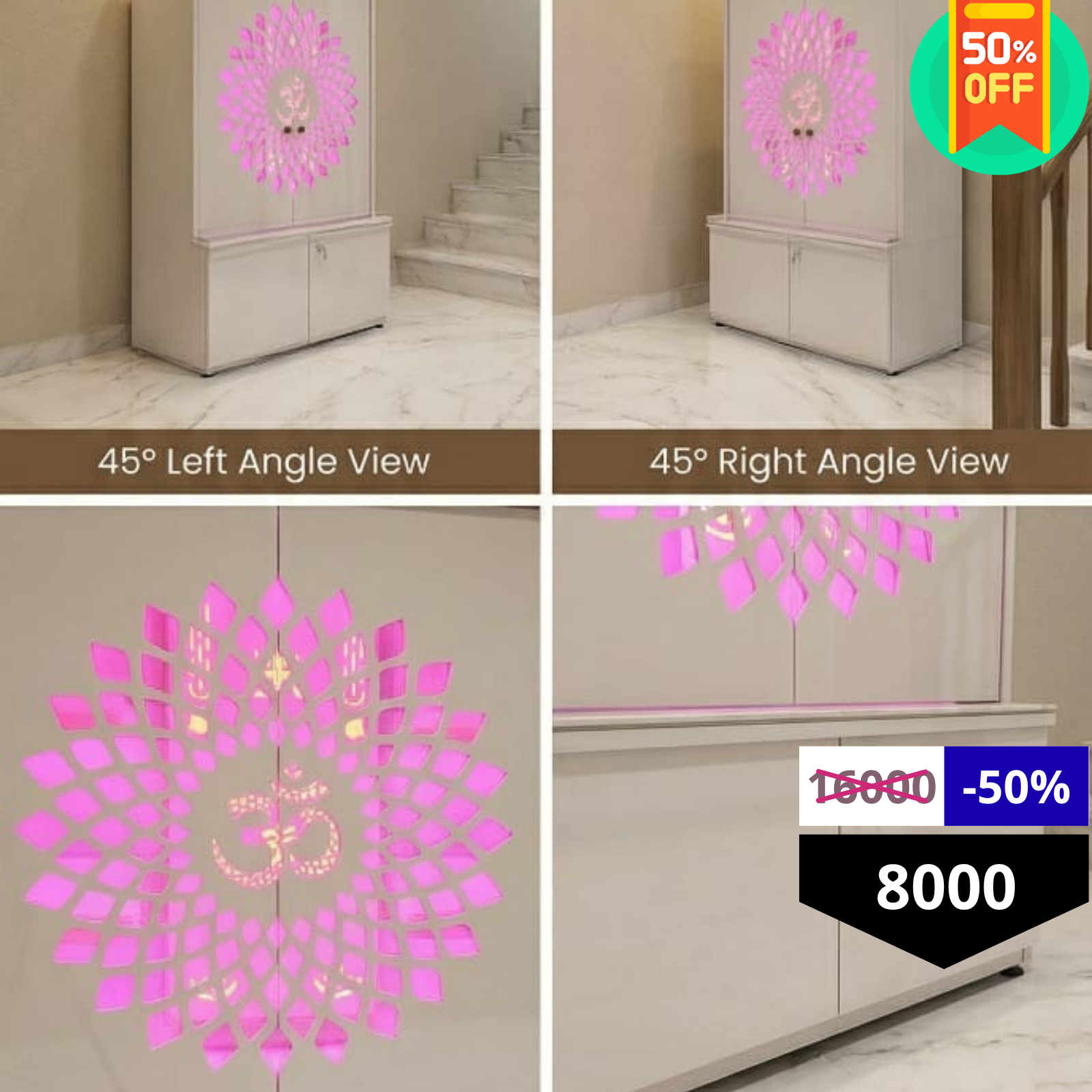 Premium LED Lotus Pooja Mandir with Cabinet Storage